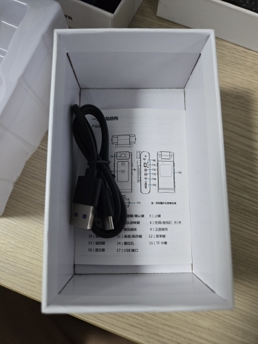 3M (2048*1596) 2M (1920*1080) 1M (1280*720) VGA (640*480) Microphone: Built-in speaker: Built-in battery: Built-in USB: High-speed 2.0 Storage: External TF card (for the best recording effect, please use U3TF card) Product battery: Built-in 3.7V lithium polymer high-voltage battery (1100mAh) Power input: DC5V/1A TYPE-C Operating temperature: -20-65° C