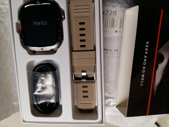Really well done smartwatch, aluminium case and silicone strap. Multilingual instructions on paper handbags. Very good value for money.