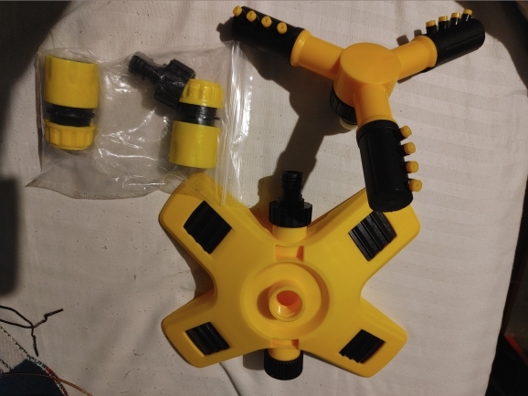 Arrived but it took this time. I liked the sprinkler. Wet a lot. Ideal use with enough water pressure. I didn't take a picture, but it's just like the illustration.