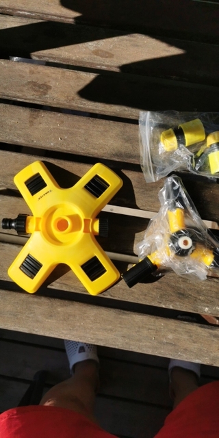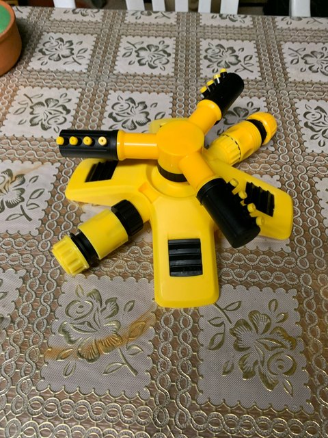 Arrived in just 1 week along with other products from other sellers, AliExpress is already starting to step on the heels of other stores Band, when chili I will rate the seller positive so as not to be ogt peeeeero I do not recommend the sprinkler. It is very well built, the plastic feels hard and well made, and he does his job but that he throws water in a radius of 7 meters I don’t know how true it is having a very strong water pressure. Around here in my house having water tank and cistern, the water pressure (I suppose) is not enough and the poor sprinkler can barely cover about 70 centimeters in radius, and well, no… Various sprinklers can be connected in series, but I don’t know how to lower the performance