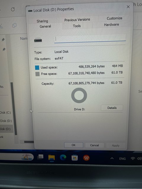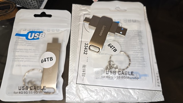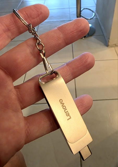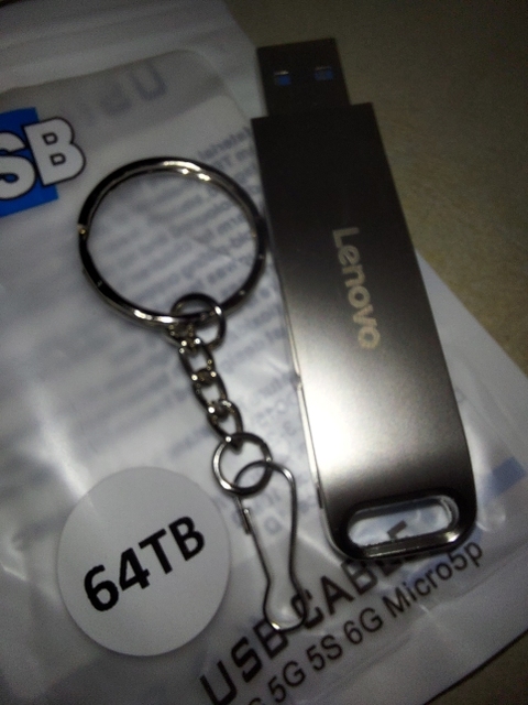 The lenovo engraved 64tb usb drive is all metal device and has a very nice locking mechanism preventing the drive from turning when trying to insert into the usb port. The drive is recognized as an ssd on my pc. The ssd is formatted as an exfat partition and shows 63.8tb when looking at the properties of the ssd drive. I was unable to format the ssd to ntfs. I am hoping that all of the 63.8tb will be available to me when i need it. I wish all of these drives had an led light so that you can tell when they are in use.