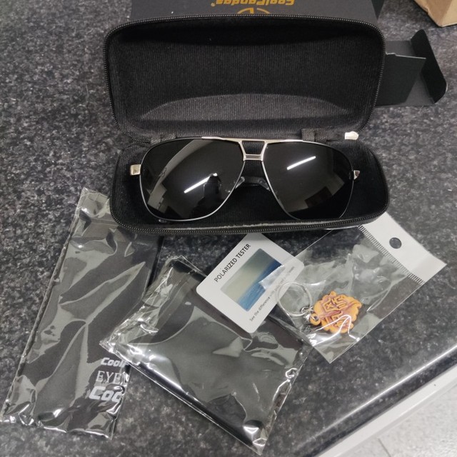 Very fast shipping, cardboard box was damaged but inside very well packed and everything’s good. Seems to be good quality and are polarized. Thanks for the gift 🙂